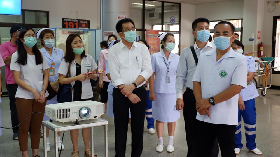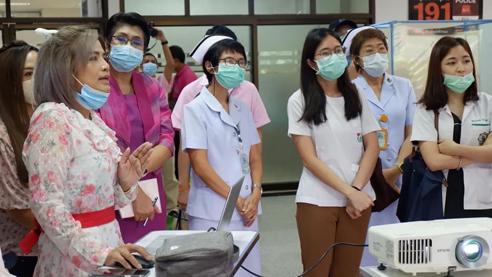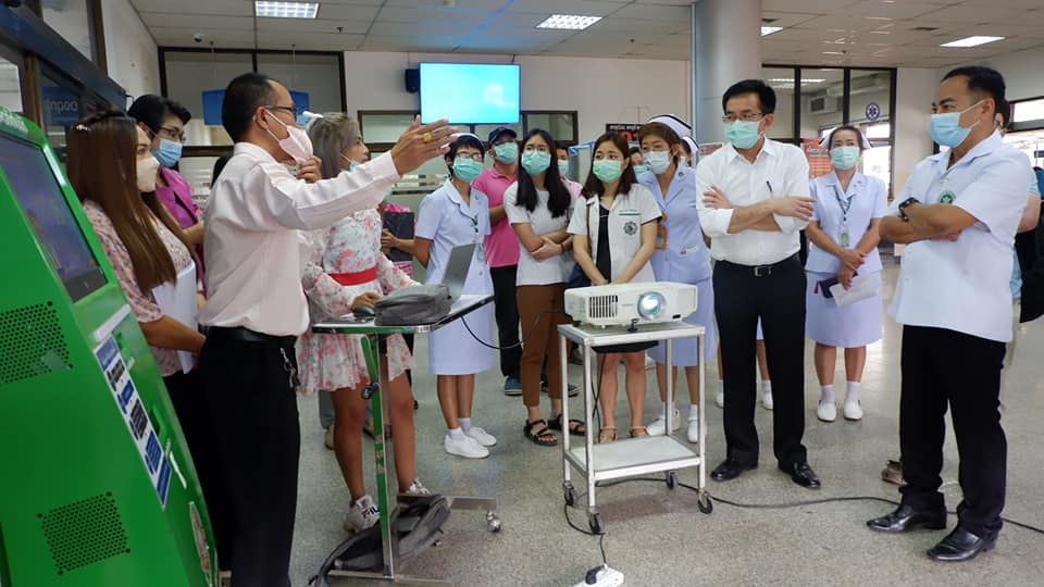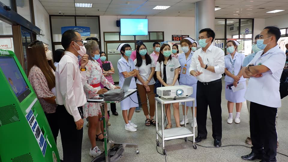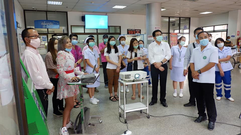 นายแพทย์สมโภชน์ กังวานธีรวัฒน์ ผู้อำนวยการโรงพยาบาลนครพนม แพทย์ พยาบาล ชมการนำเสนอตัวอย่างการทำงานของโปรแกรมปฏิบัติการรับ-ส่งต่อข้อมูลผู้ป่วย (PAC refer) ซึ่งระบบนี้จะจัดเก็บและรับส่งข้อมูลภาพทางการแพทย์ผ่านระบบคลาวด์สำหรับใช้ในการส่ง รับ อ่าน และเก็บไฟล์ภาพทางรังสีและข้อมูลผู้ป่วยที่ต้องส่งต่อผู้ป่วย ไปรับการรักษาที่โรงพยาบาลที่เชี่ยวชาญกว่า เพื่อการพัฒนาระบบบริการทางการแพทย์การพยาบาลจังหวัดนครพนมในอนาคต ณ บริเวณพื้นที่ด้านหน้าห้องอุบัติเหตุและฉุกเฉิน ชั้น 1 โรงพยาบาลนครพนม