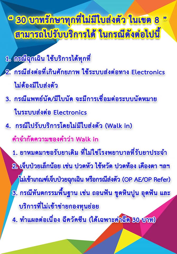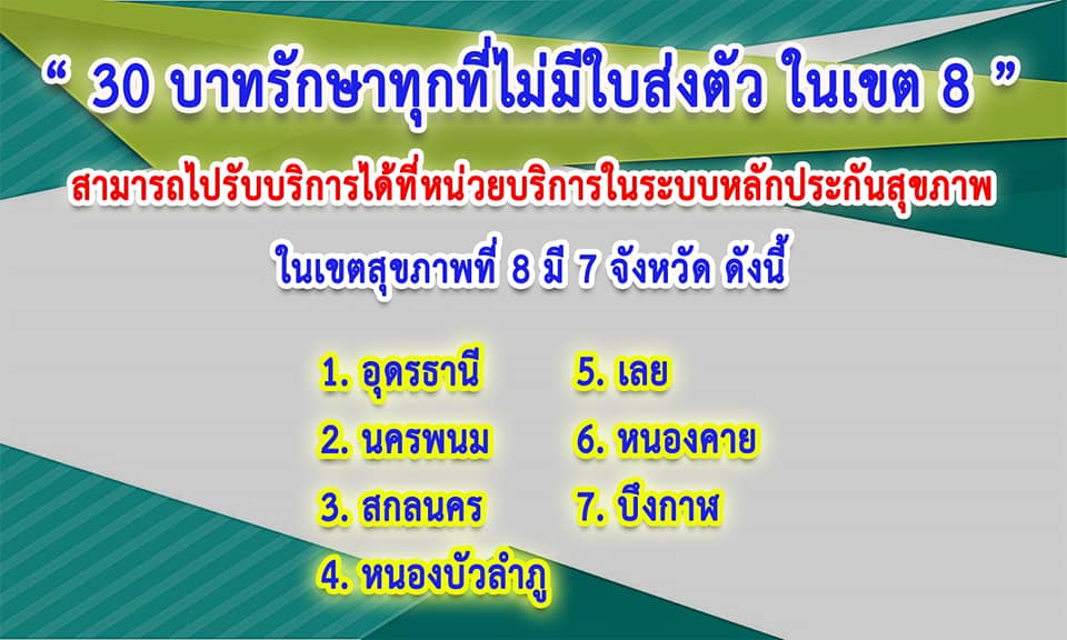เปิดแล้ว ...โครงการ 30บาทรักษาทุกที่ไม่มีใบส่งตัว เขตสุขภาพที่ 8 กระทรวงสาธารณสุข