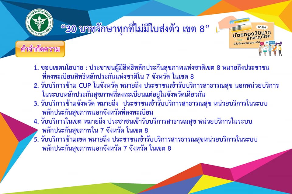 โครงการ 30บาทรักษาทุกที่ไม่มีใบส่งตัว เขตสุขภาพที่ 8 กระทรวงสาธารณสุข