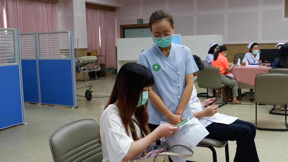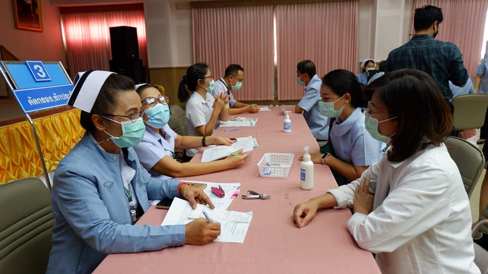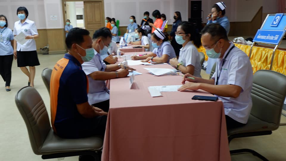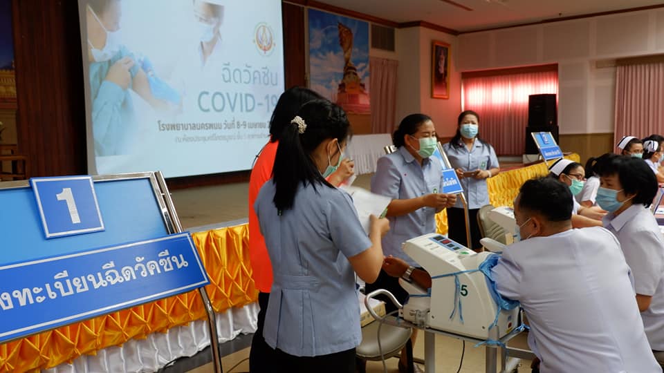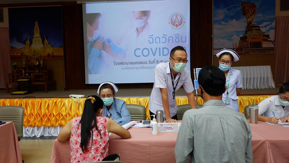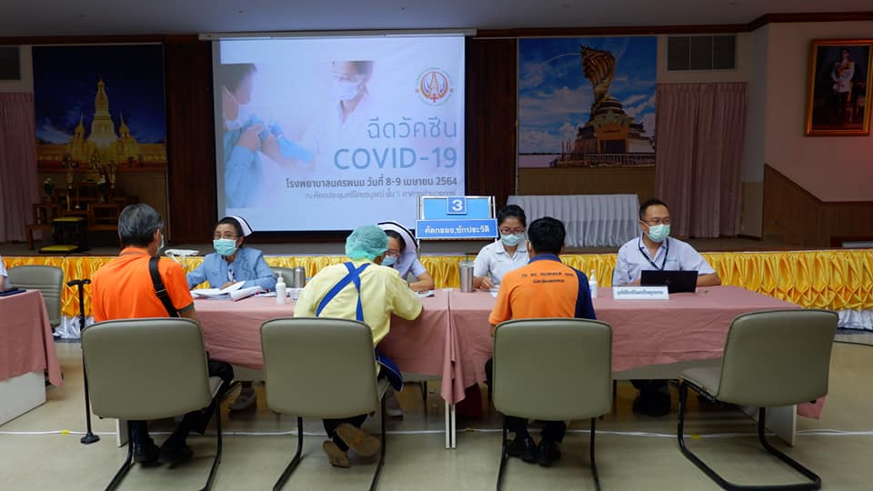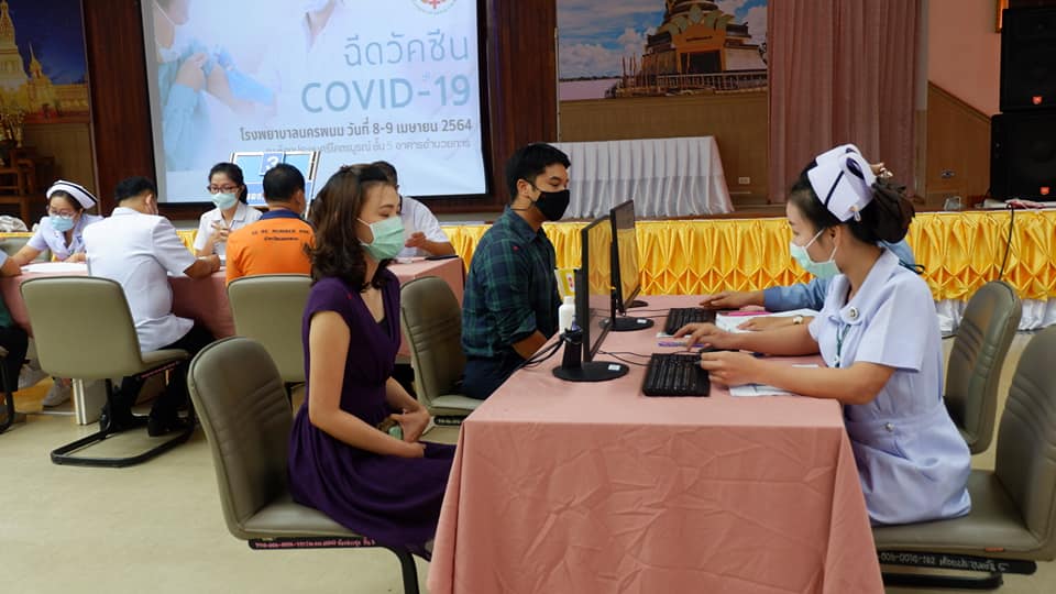 สันที่ 8 เม.ย.2564 บุคลากรทางการแพทย์ด่านหน้า รพ.นครพนม สสจ.นครพนม เทศบาลเมืองนครพนม สสอ.เมืองนครพนม รับการฉีดวัคซีนโควด-19 ที่ห้องประชุมศรีโคตรบรูณ์ รพ.นครพนม