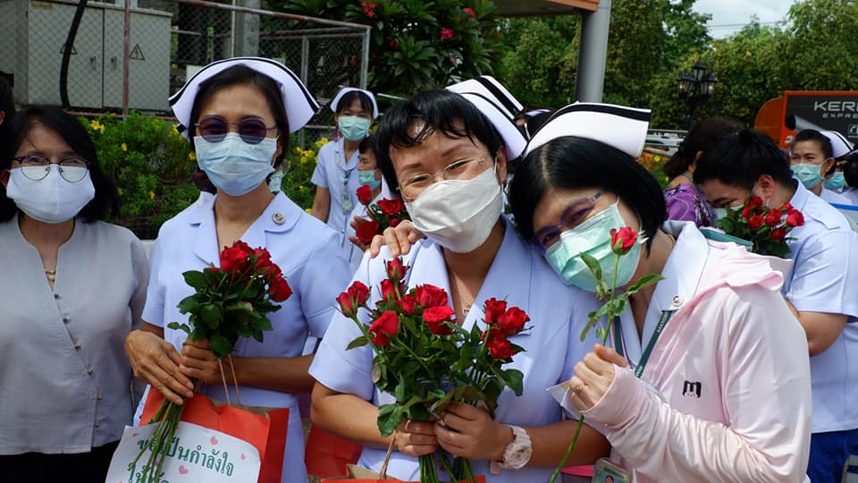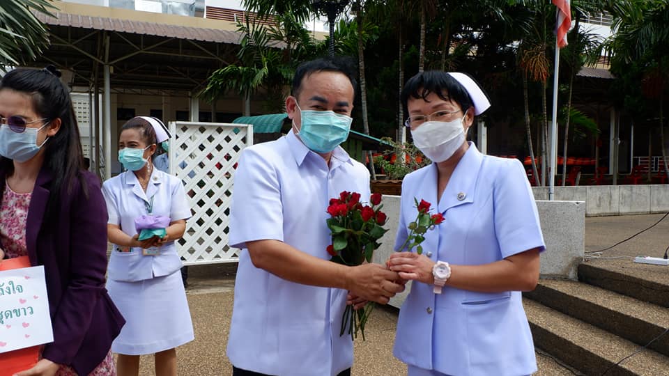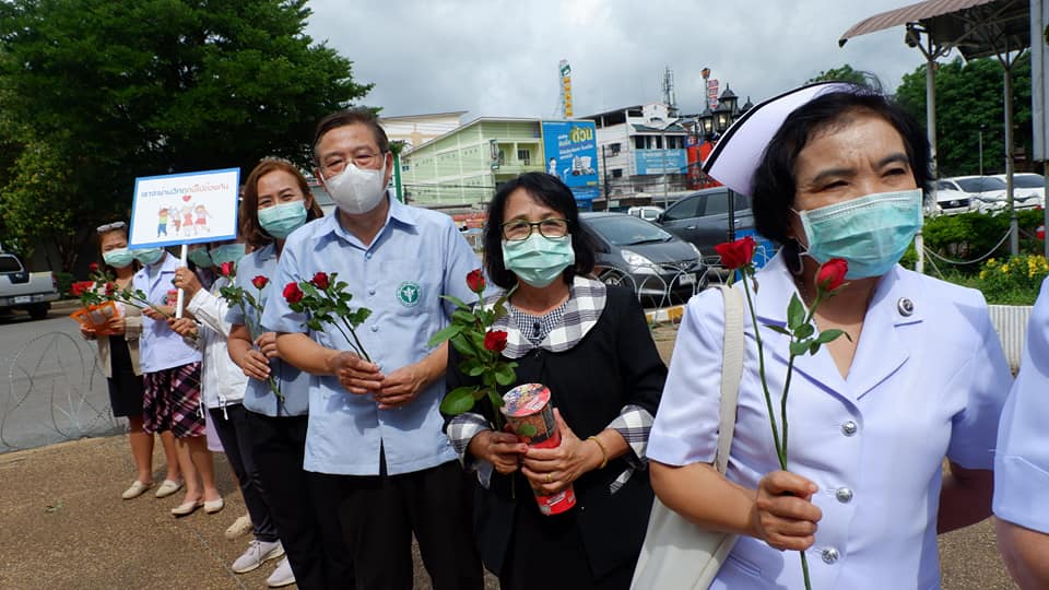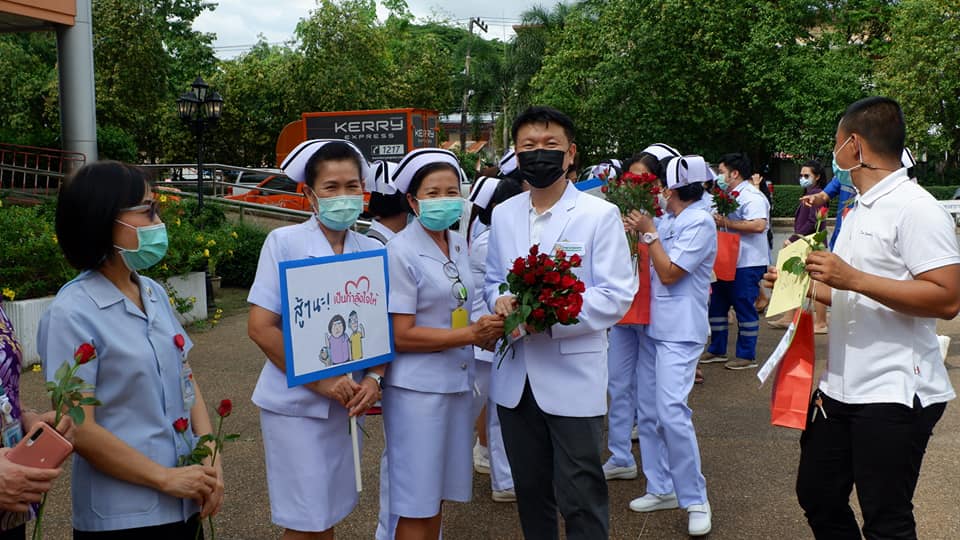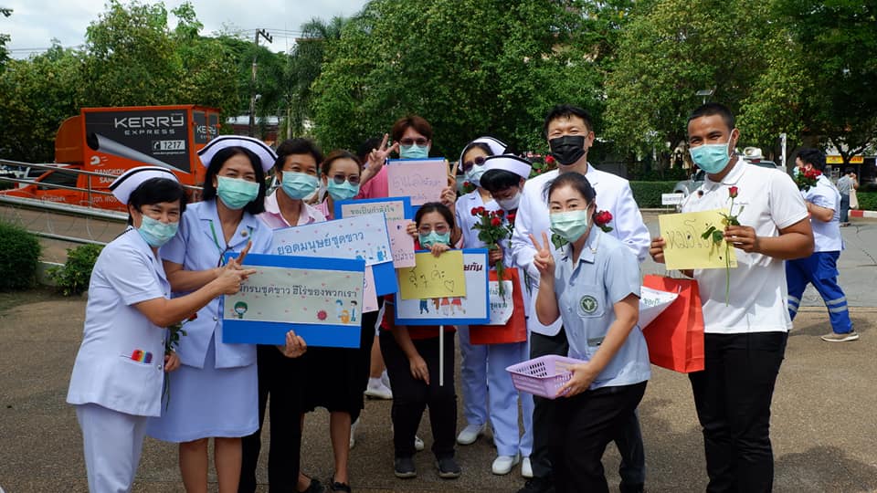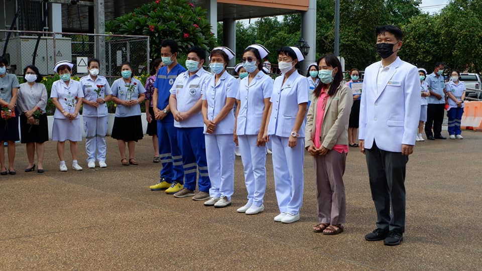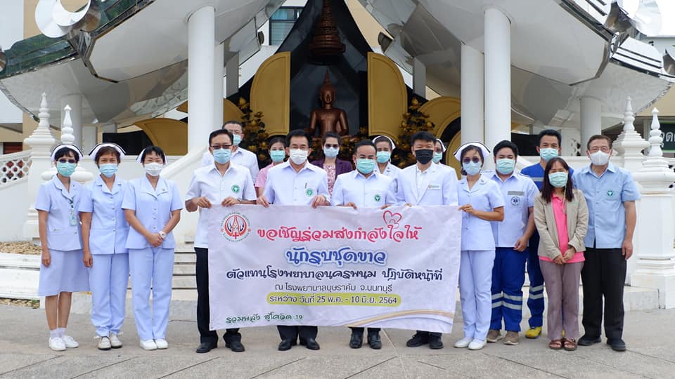 บุคลากรสนับสนุนโรงพยาบาลสนามบุษราคัม อาคารชาแลนเจอร์ เมืองทองธานี จังหวัดนนทบุรี จากโรงพยาบาลนครพนม เขตสุขภาพที่ 8 อุดรธานี ทีมนักรบชุดขาวประกอบด้วย 1. นายแพทย์ขวัญชัย ประเสริฐยิ่ง อายุรแพทย์ 2. นางสาวจิราวรรณ สันติเสวี เภสัชกร 3.นางบุญรอง ยามแย้ม พยาบาลวิชาชีพ 4.นางจิรัชญา ฤทธิกรรณ พยาบาลวิชาชีพ 5.นางสาวช้องนาง สุวรรณราช พยาบาลวิชาชีพ 6.นายปริญญา ดวงมณี นักปฏิบัติการฉุกเฉินการแพทย์ (Paramedic) 7.นายพัฒนพล โกพล เจ้าหน้าที่เวชกิจฉุกเฉิน (EMT-I) ที่ลานพระราชานุสาวรีย์สมเด็จพระบิดา รพ.นครพนม ไปปฏิบัติราชการดูแลผู้ป่วย ณโรงพยาบาลสนามบุษราคัม อาคารชาแลนเจอร์ เมืองทองธานี จังหวัดนนทบุรี ระหว่างวันที่ 26 พ.ค.2564 -10 มิถุนายน 2564