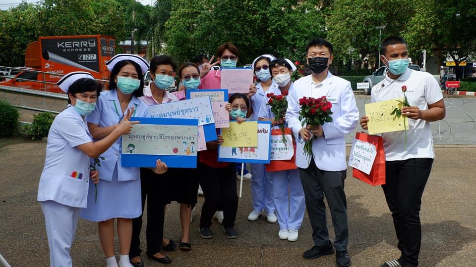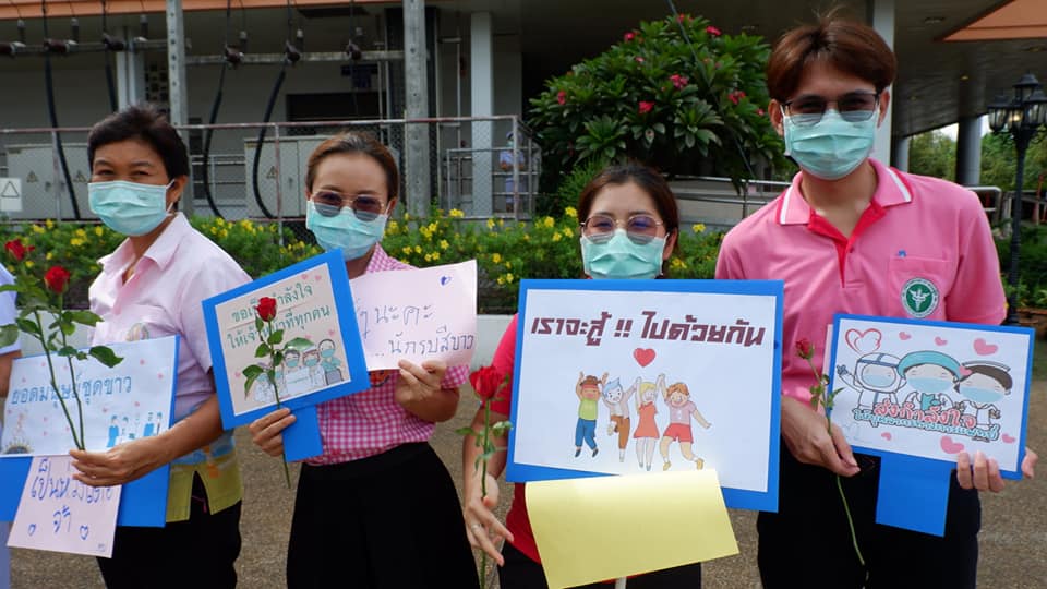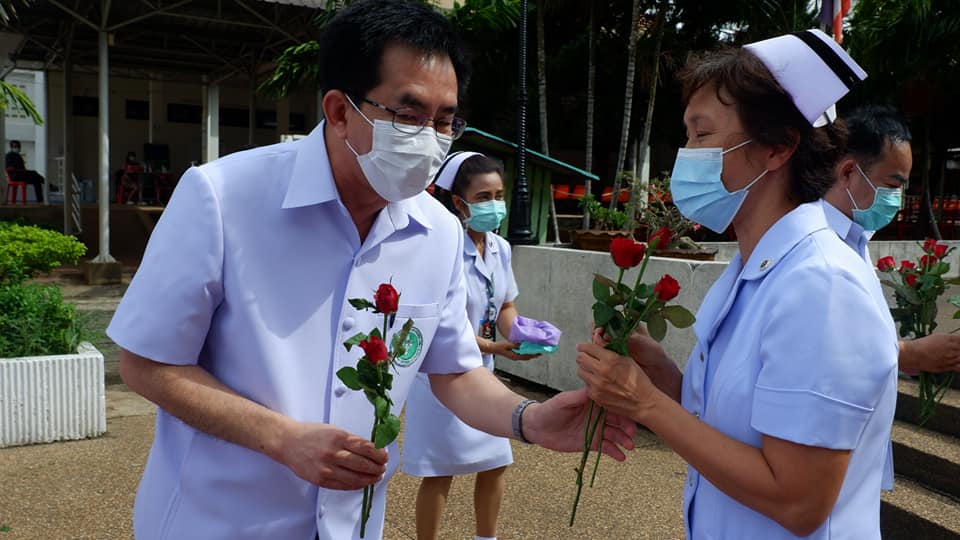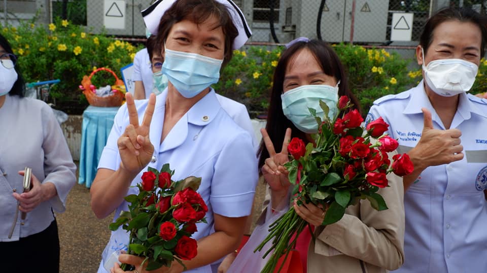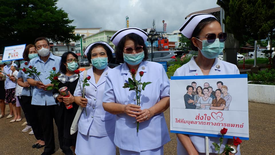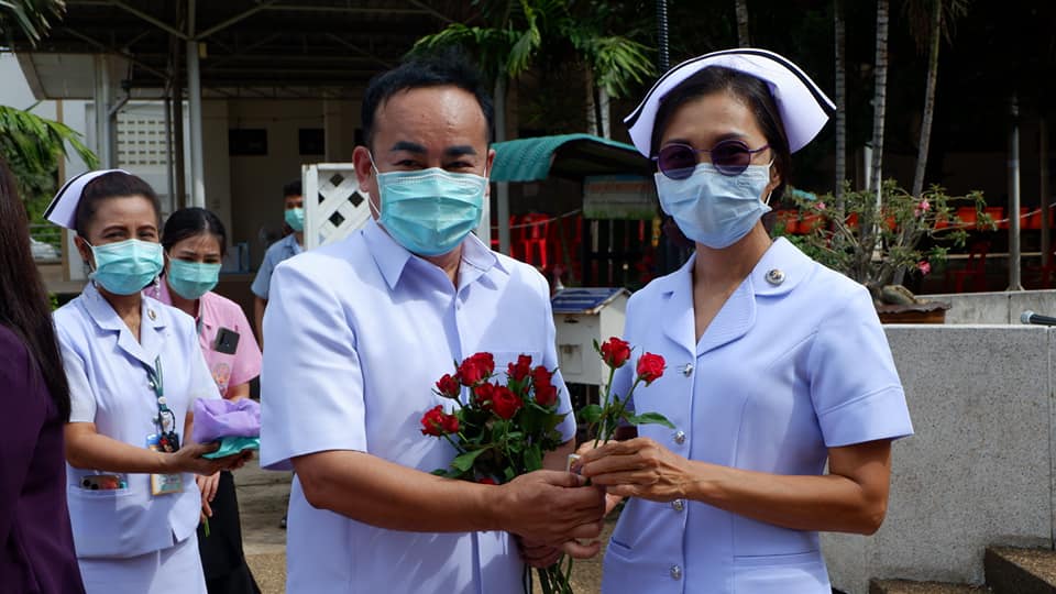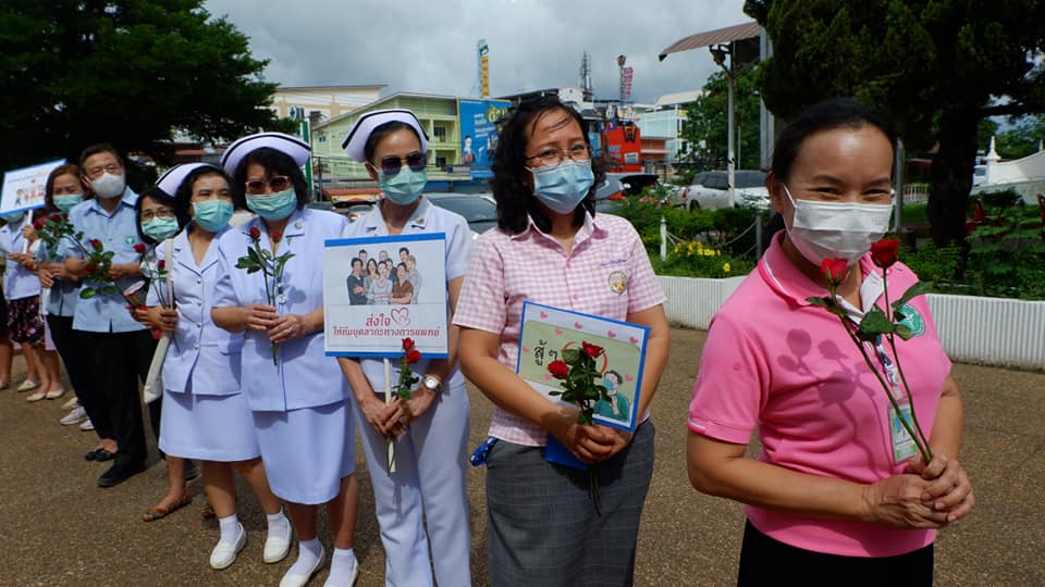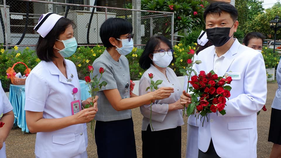 บุคลากรสนับสนุนโรงพยาบาลสนามบุษราคัม อาคารชาแลนเจอร์ เมืองทองธานี จังหวัดนนทบุรี จากโรงพยาบาลนครพนม เขตสุขภาพที่ 8 อุดรธานี ทีมนักรบชุดขาวประกอบด้วย 1. นายแพทย์ขวัญชัย ประเสริฐยิ่ง อายุรแพทย์ 2. นางสาวจิราวรรณ สันติเสวี เภสัชกร 3.นางบุญรอง ยามแย้ม พยาบาลวิชาชีพ 4.นางจิรัชญา ฤทธิกรรณ พยาบาลวิชาชีพ 5.นางสาวช้องนาง สุวรรณราช พยาบาลวิชาชีพ 6.นายปริญญา ดวงมณี นักปฏิบัติการฉุกเฉินการแพทย์ (Paramedic) 7.นายพัฒนพล โกพล เจ้าหน้าที่เวชกิจฉุกเฉิน (EMT-I) ที่ลานพระราชานุสาวรีย์สมเด็จพระบิดา รพ.นครพนม ไปปฏิบัติราชการดูแลผู้ป่วย ณโรงพยาบาลสนามบุษราคัม อาคารชาแลนเจอร์ เมืองทองธานี จังหวัดนนทบุรี ระหว่างวันที่ 26 พ.ค.2564 -10 มิถุนายน 2564